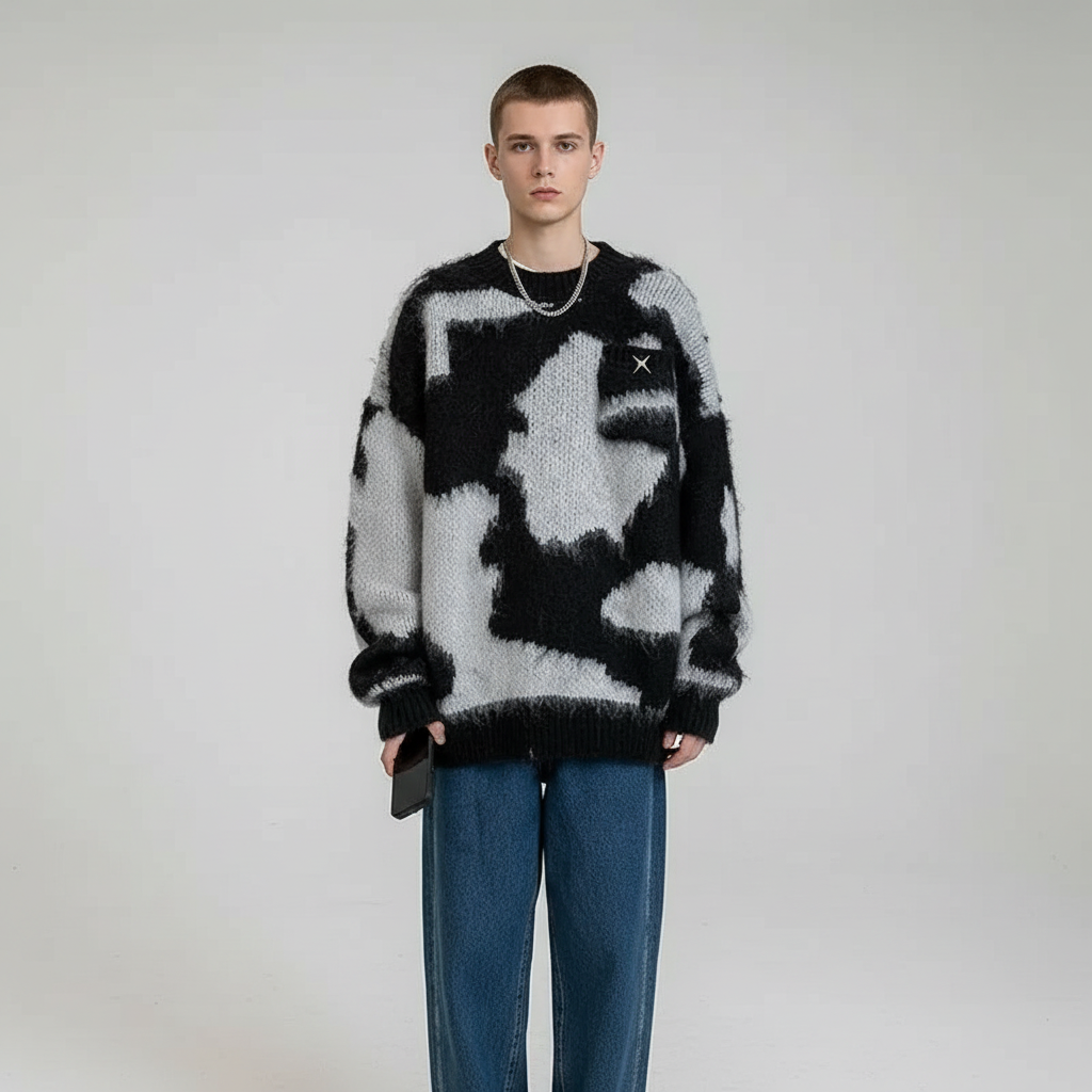 סוודר פרוותי בהדפס פרה